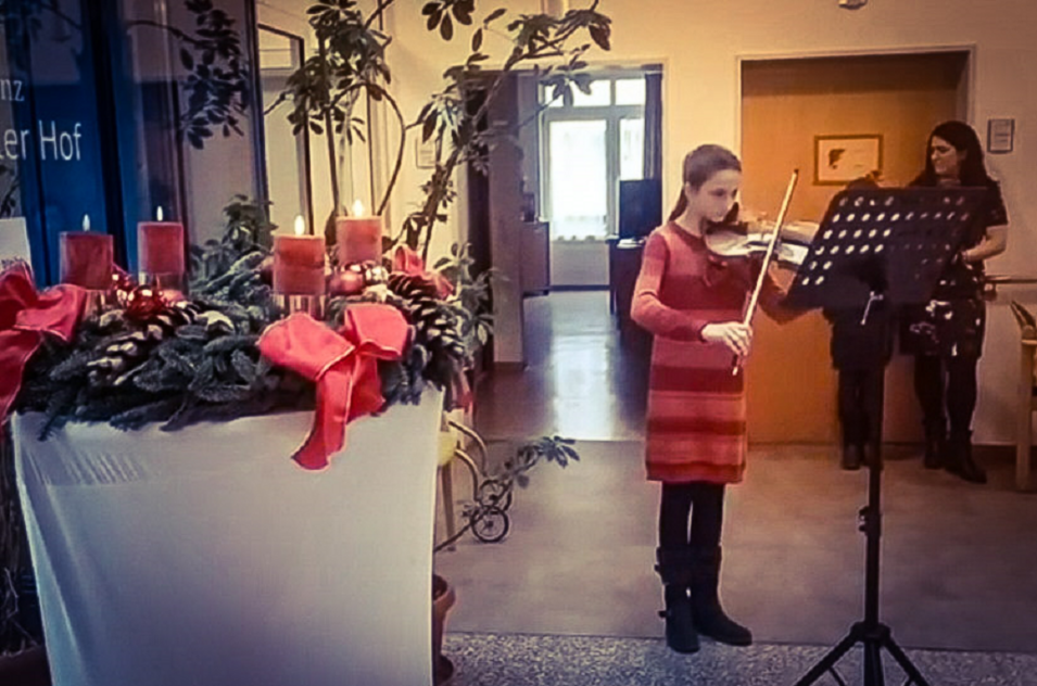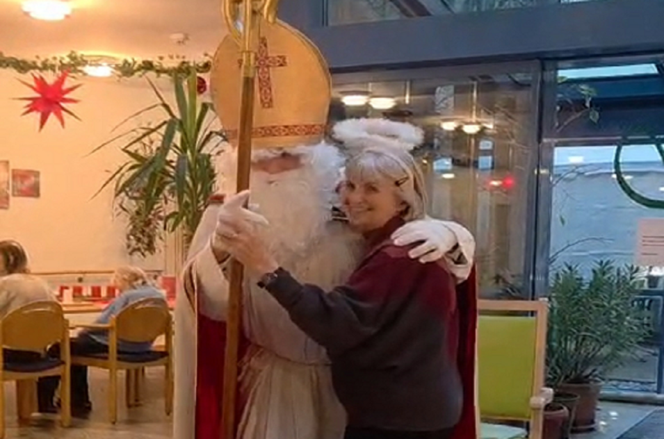Es war wieder keine weiße Weihnacht, doch so manches Neues erwartete unsere Bewohnerinnen und Bewohner in der Weihnachtszeit. Dieses Jahr wurde der Trierweiler Weihnachtsmarkt auf unserem Vorplatz veranstaltet. So konnten Trierweiler Bürger*Innen und Bewohner*Innen mit ihren Angehörigen weihnachtliche Stimmung gemeinsam erleben. Aber auch das Programm im Haus kam nicht zu kurz. Ein Besuch der Kinder des Trierweiler Kindergartens, Zauberin Mara oder auch Viktor Vinograow mit seiner "Domra" konnten begeistern.
