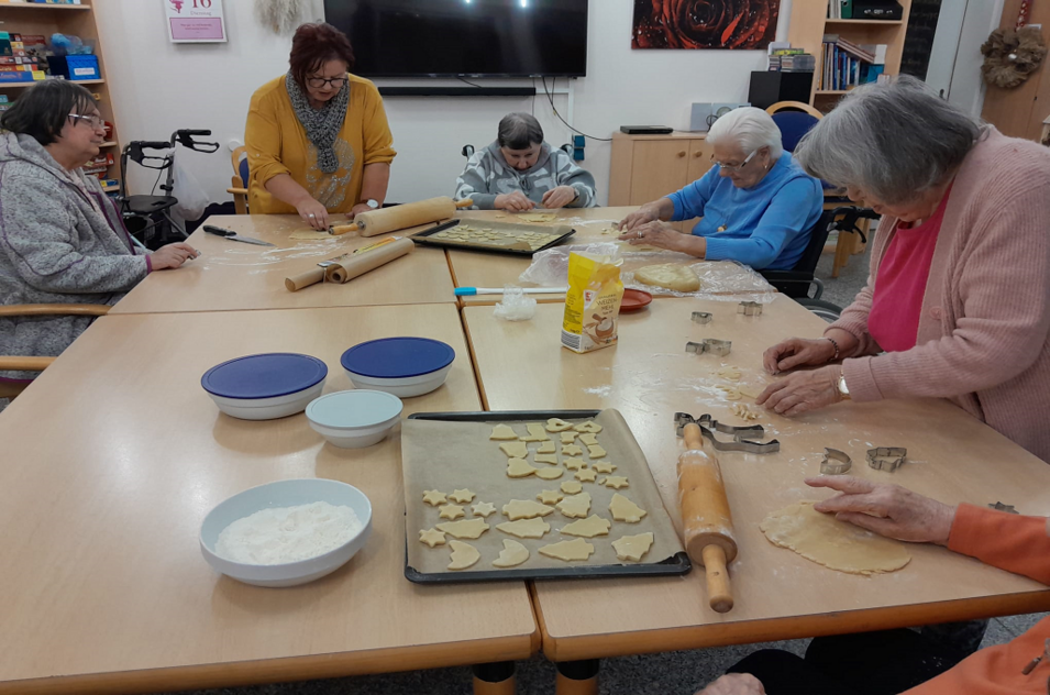 Wie jedes Jahr feierten wir zusammen mit unseren Bewohnerinnen und Bewohnern das Weihnachtsfest. Das Haus wurde liebevoll dekoriert, die Kinder vom Trierweiler Kindergarten besuchten uns um einen Weihnachtsbaum im Eingangsbereich zu schmücken. Es wurde gebacken, gebastelt und gesungen. Durch das Adventsprogramm begleiteten uns der Chor "die neue Generation", das Künstlerduo "die Heidweilers" und unser Helmut Fischbach.